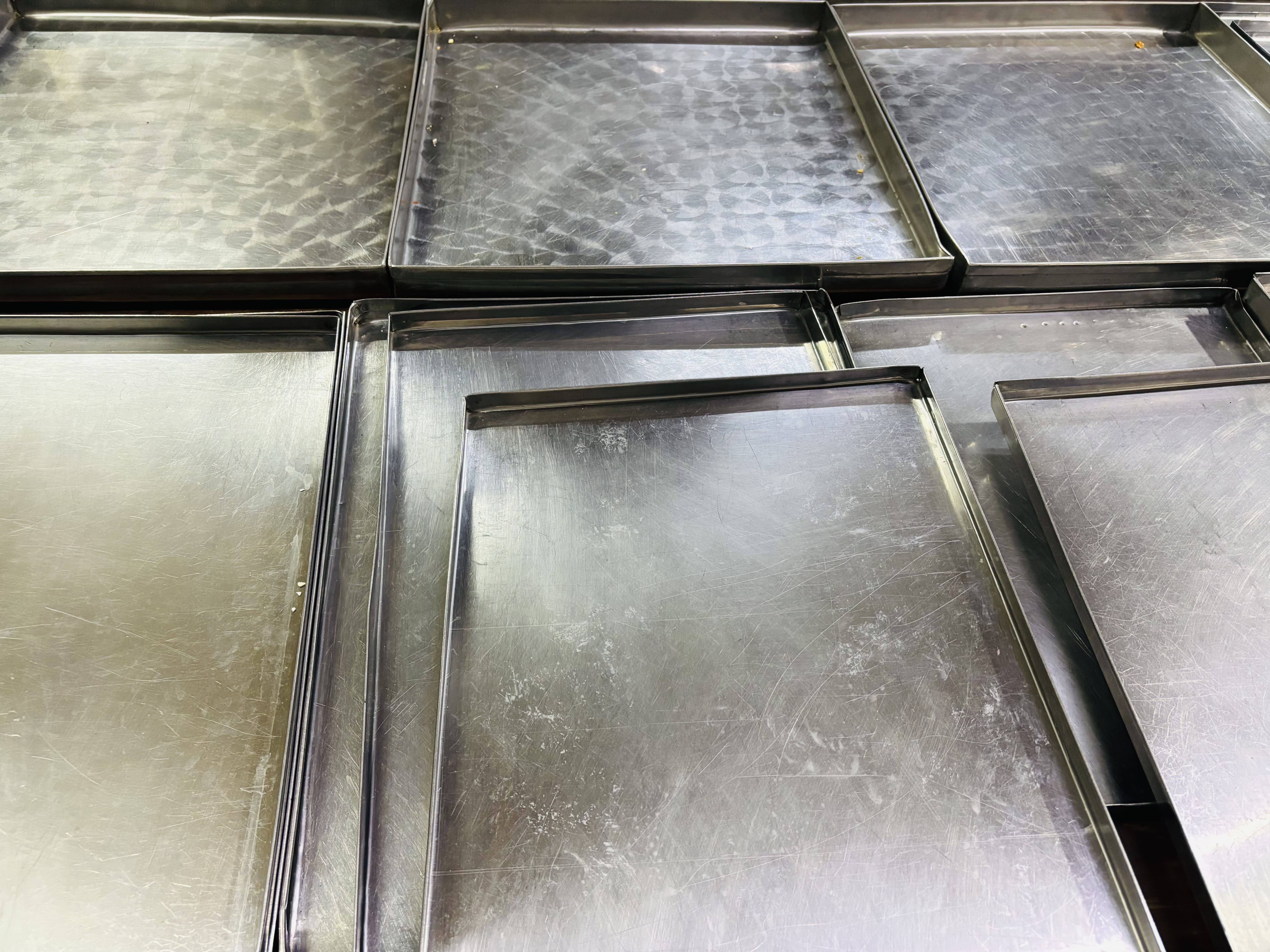 LOTE #035 – 27 Bandejas de Ac/Inox de alto calibre – 38x44cm, 40x28cm, 45x28cm, 33x23cm y 30x25cm