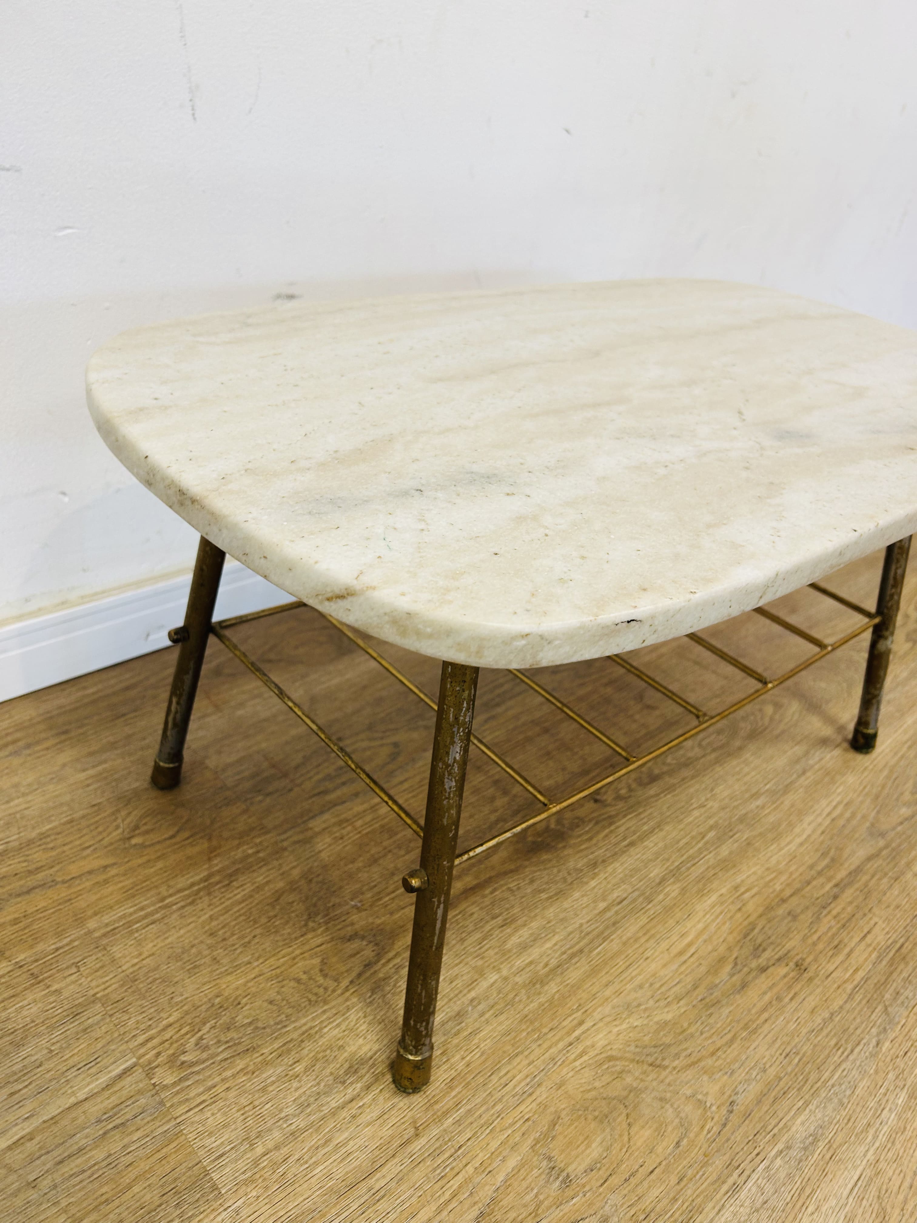 Lote #037R – Mesa de sala americana con estructura de metal y tablero de mármol – 73x38x38cm