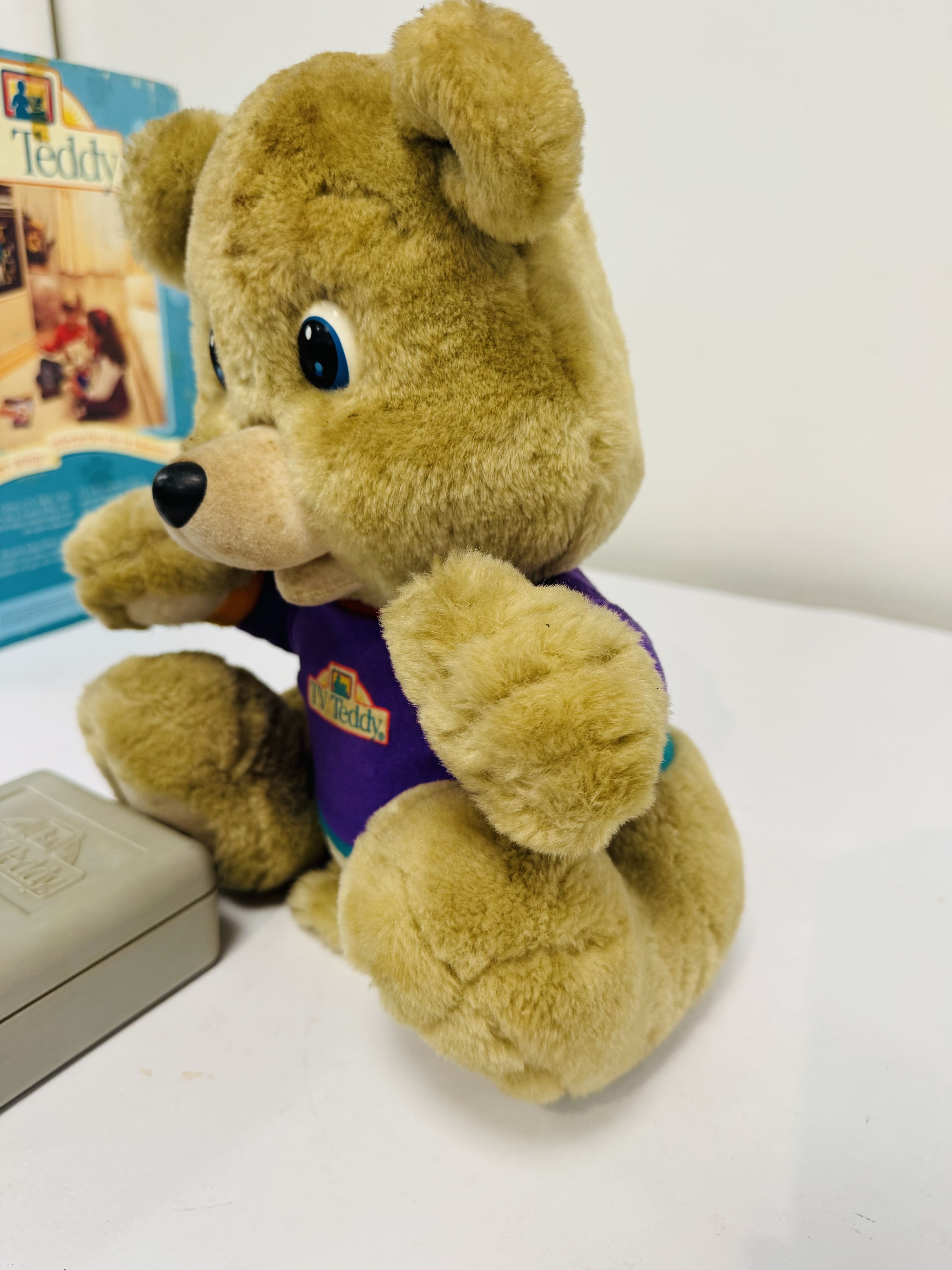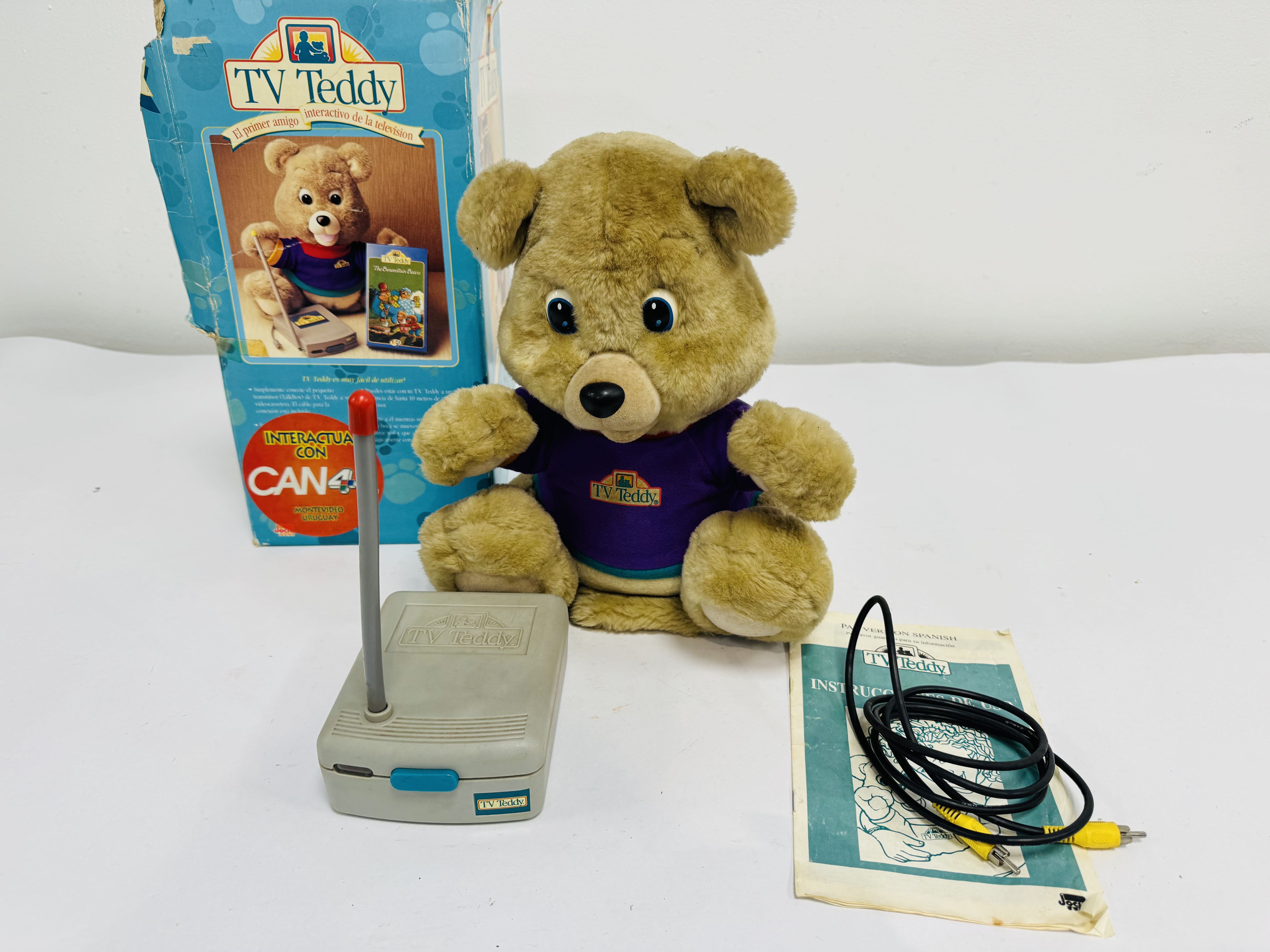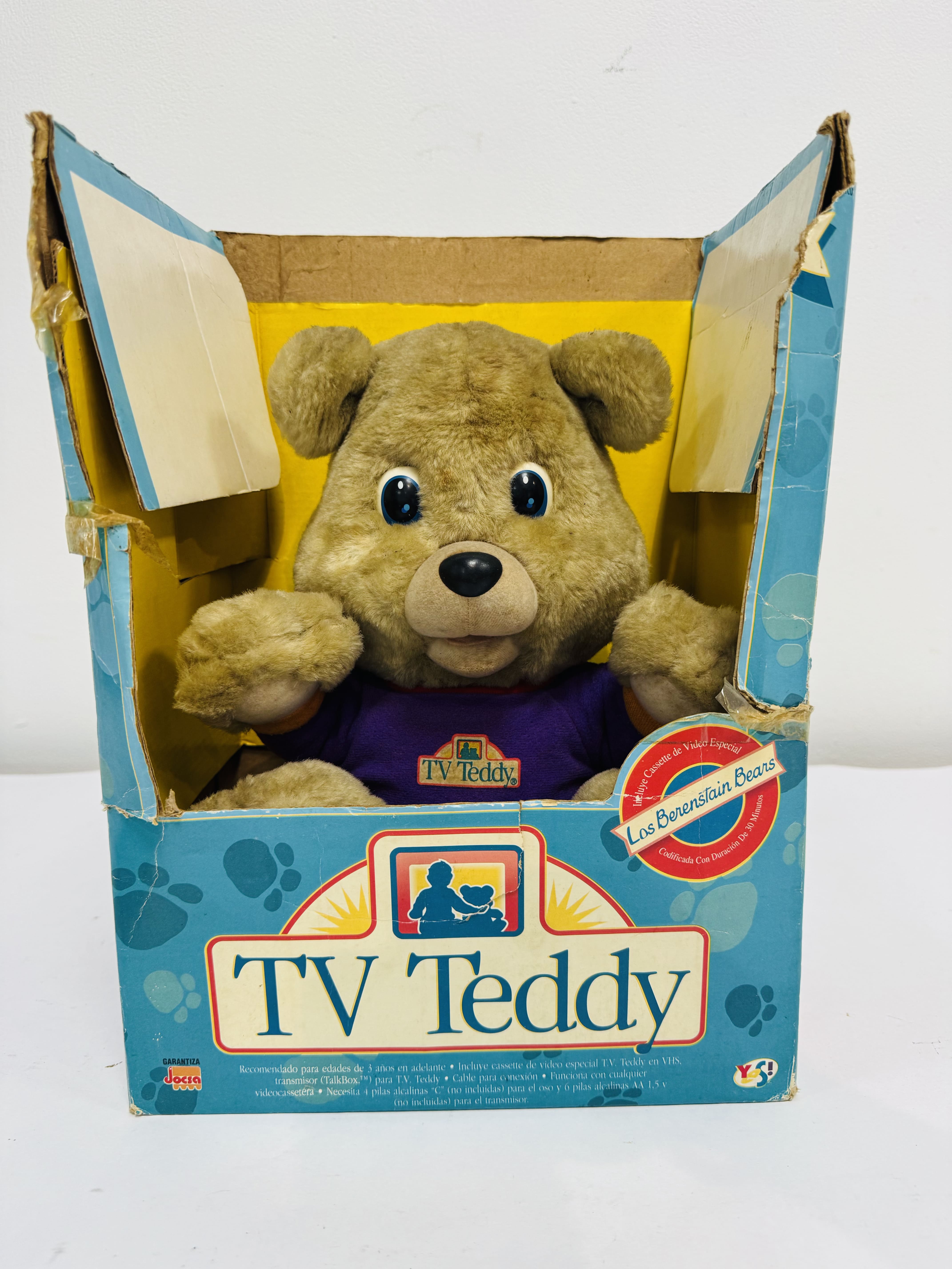 Lote #047 – Oso Tv Teddy interactivo con caja y transmisor – año 1990 – 32cm