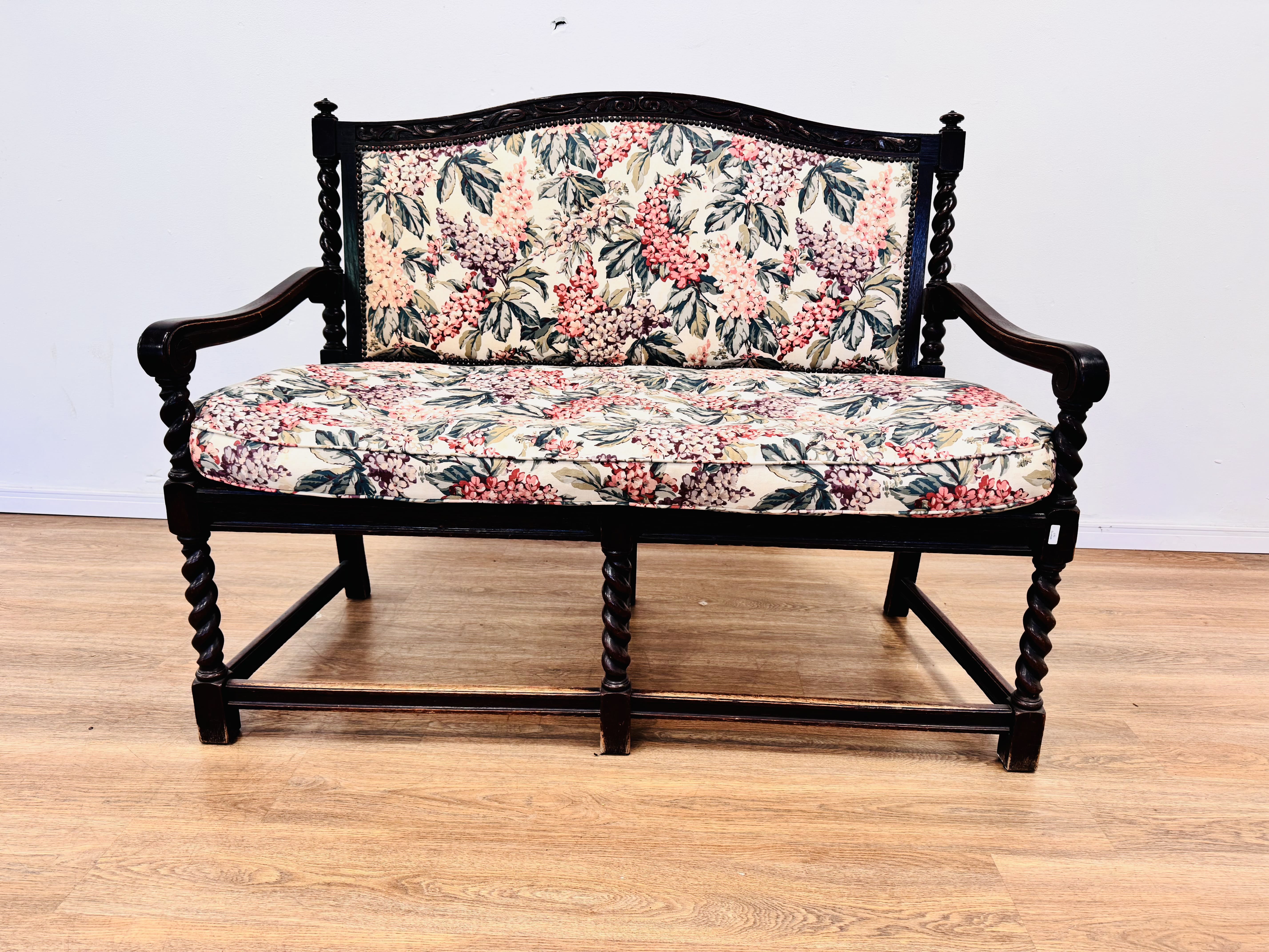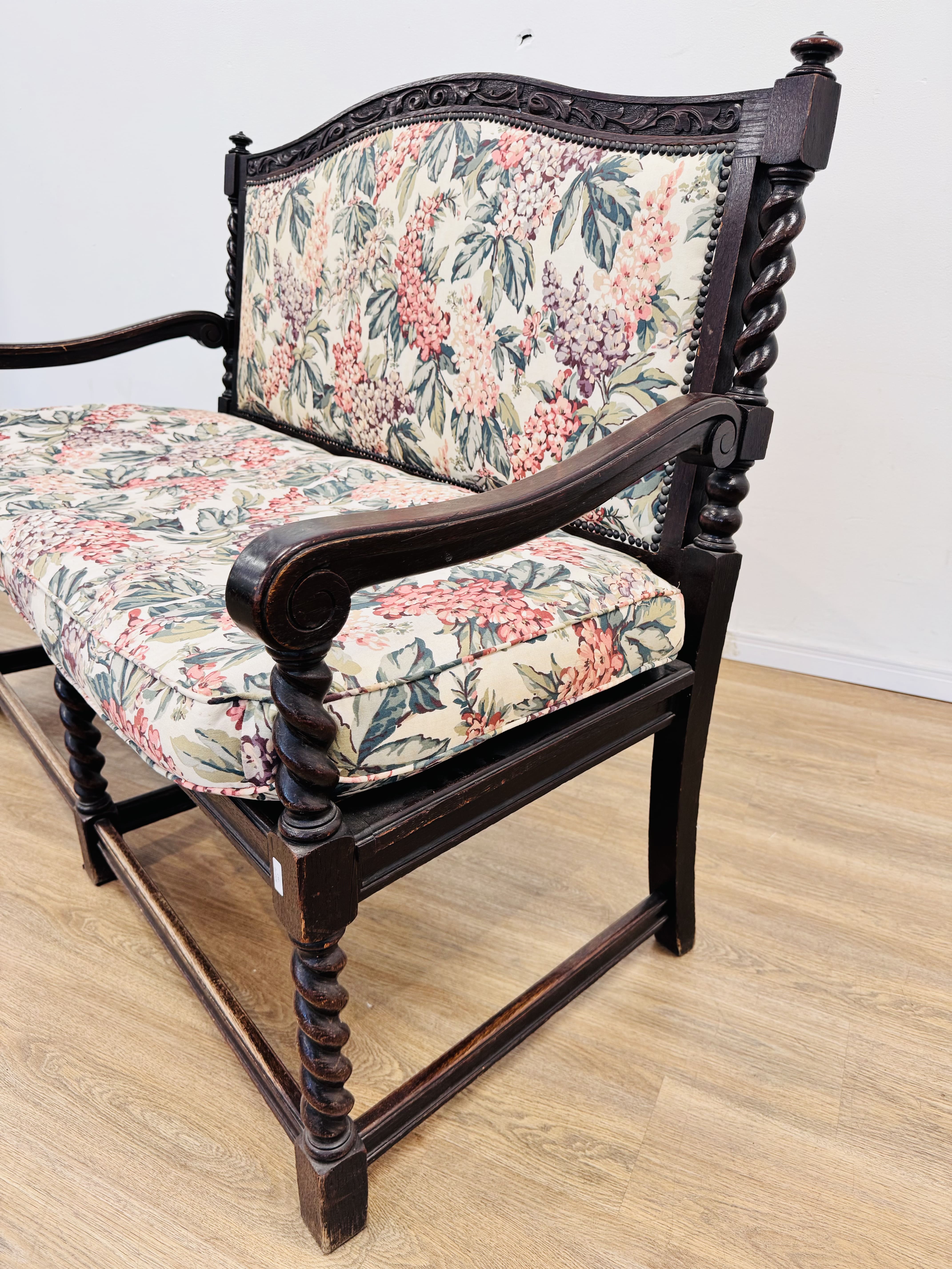 Lote #061 – Butaca doble estilo Jacobino de roble con almohadón en el asiento y respaldo tapizado – 137x60x105cm