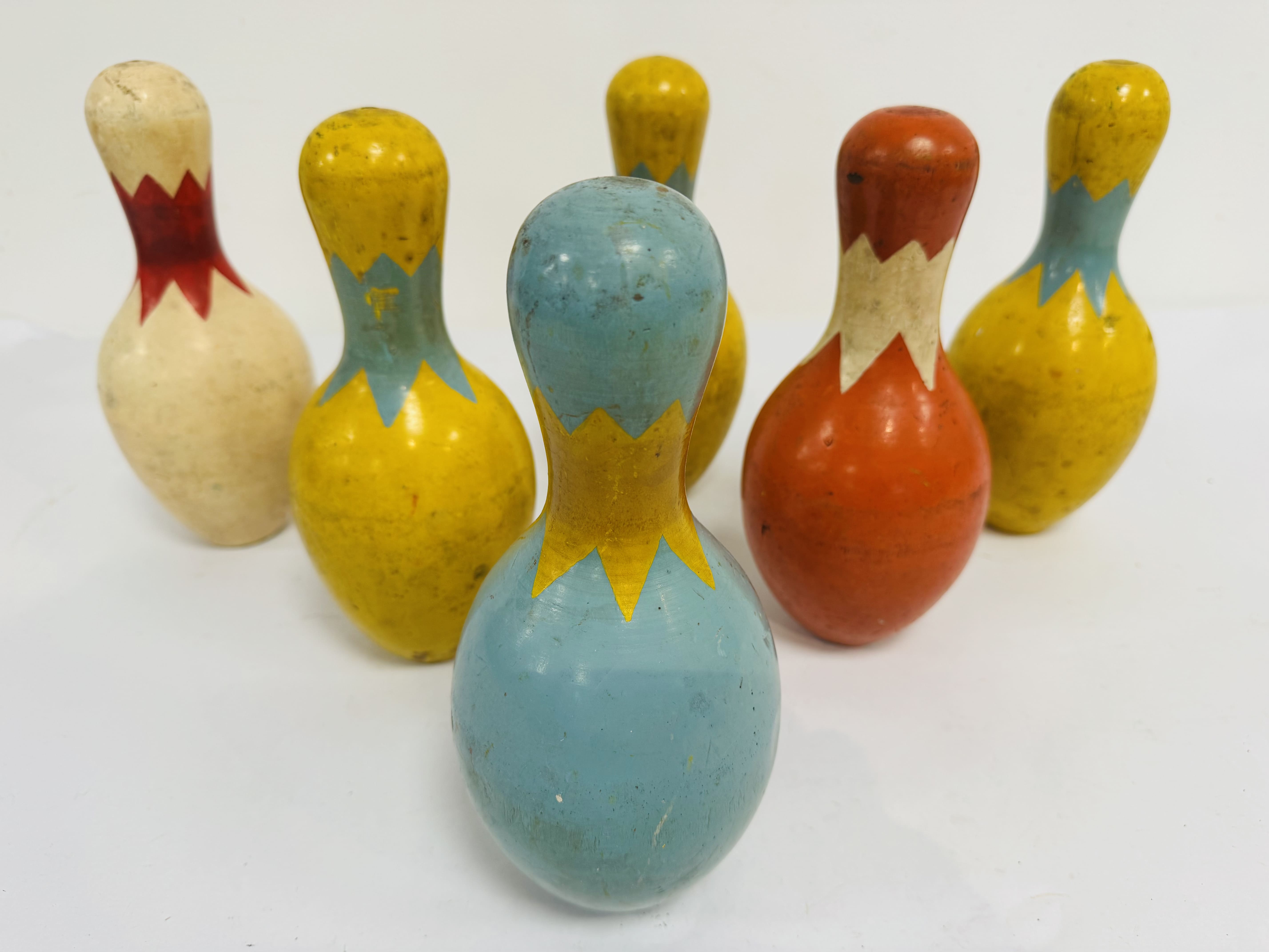 Lote #067 – 6 bolos de madera de colores de los años 80s – 24cm