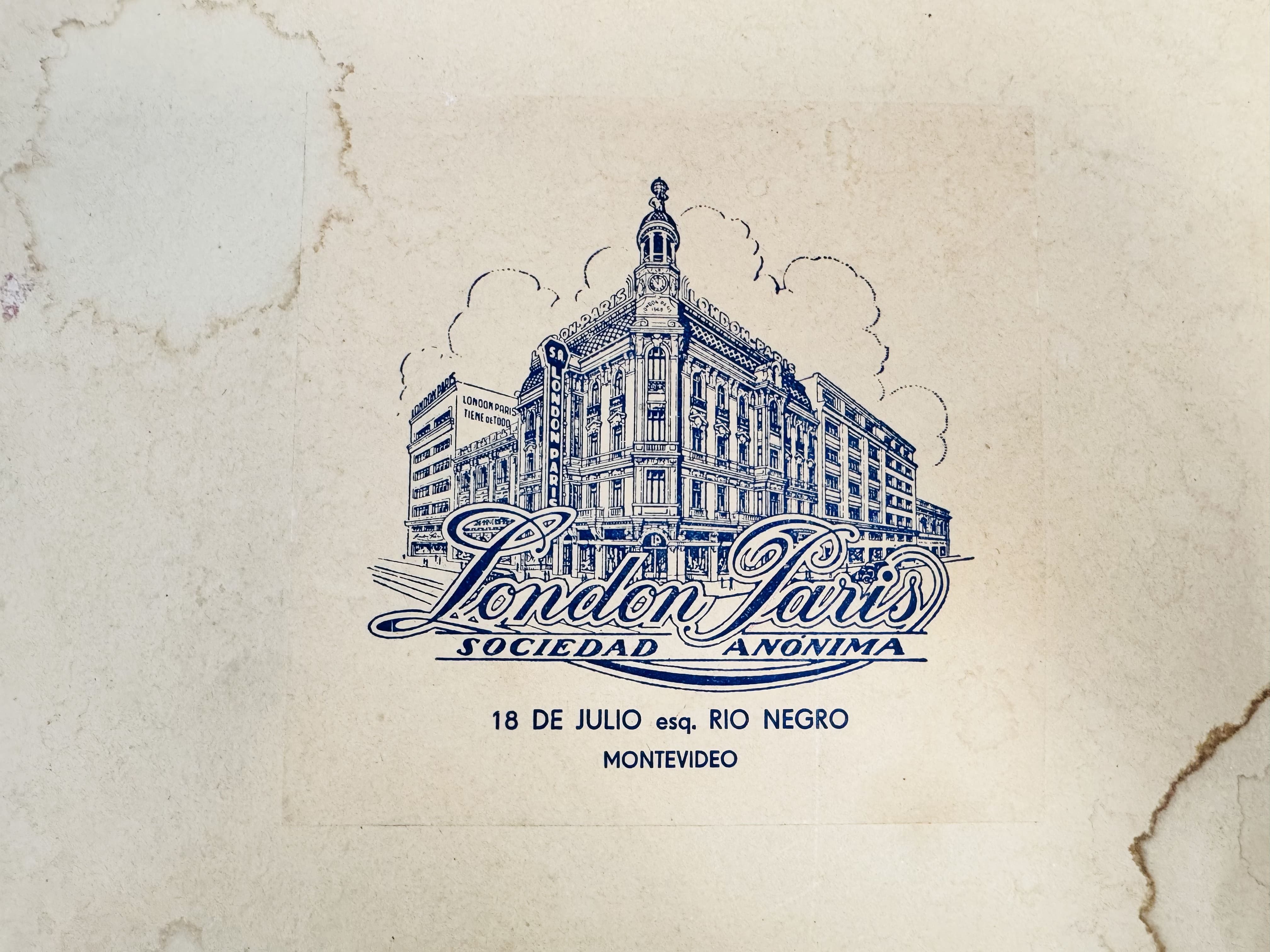 Lote #070R – Caja de cartón original de London Paris, packaging vintage de vestidos – 46x13cm