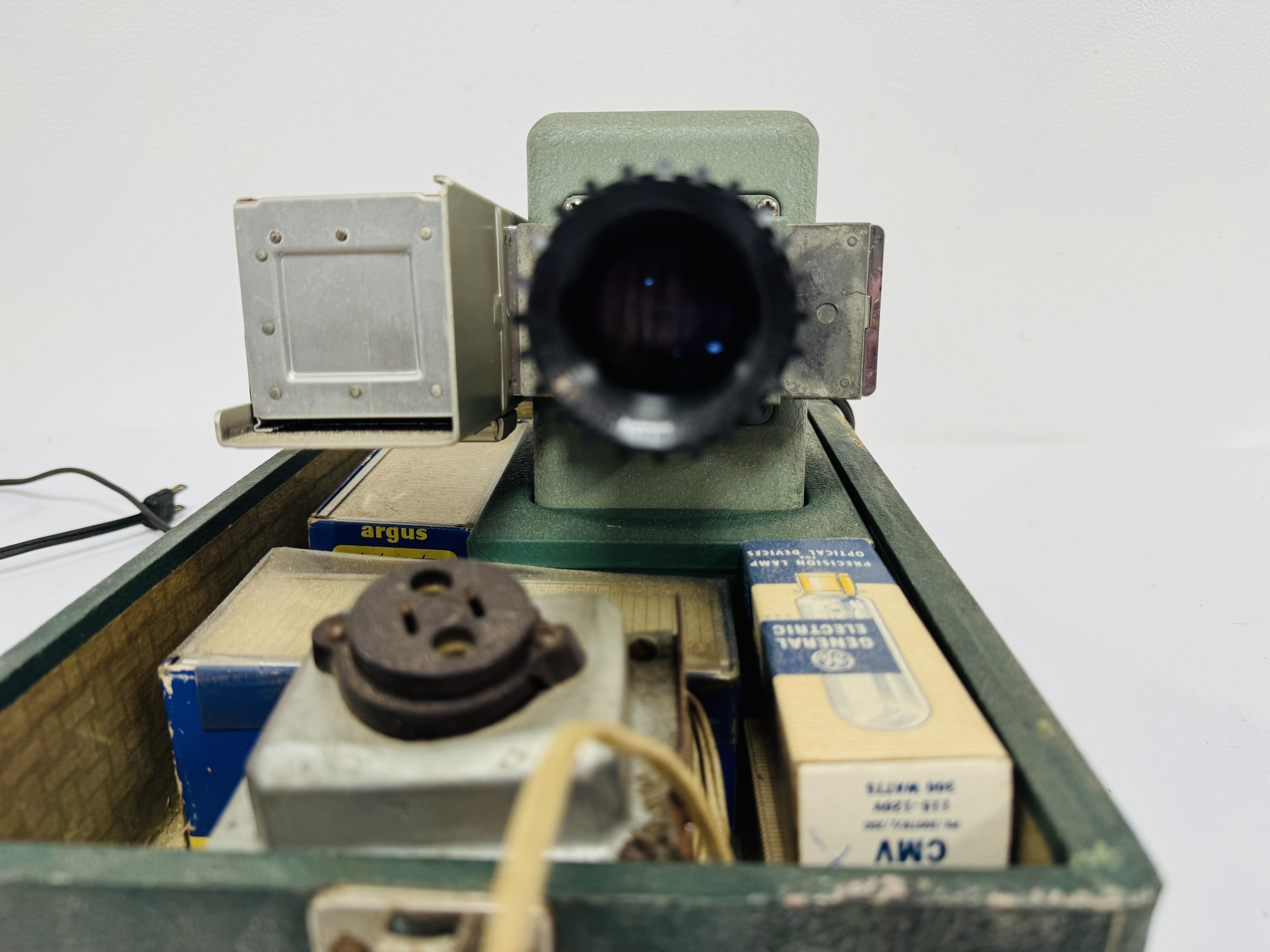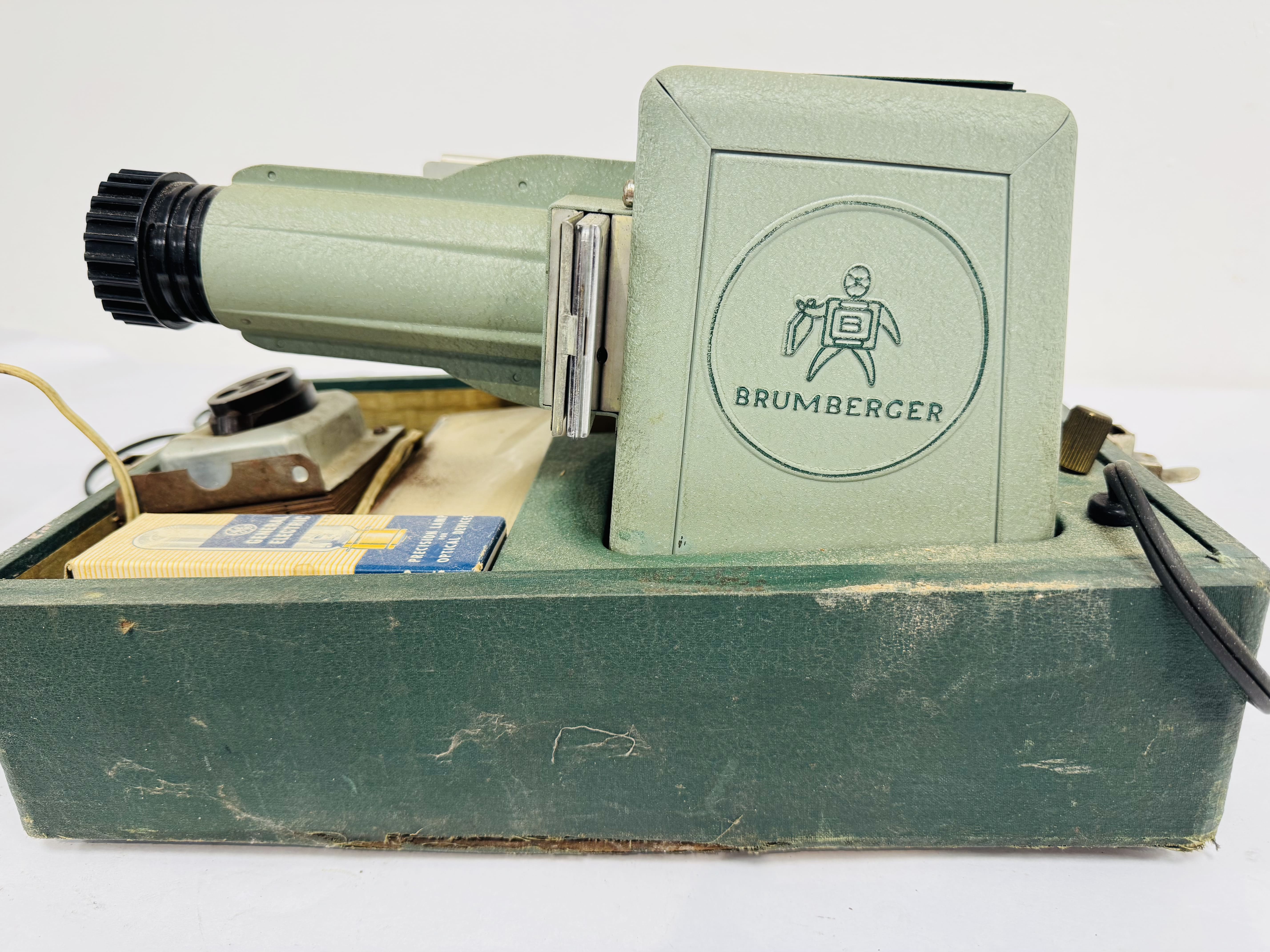 Lote #074 – Proyector de diapositivas Brumberger con valija – 35x23x25cm