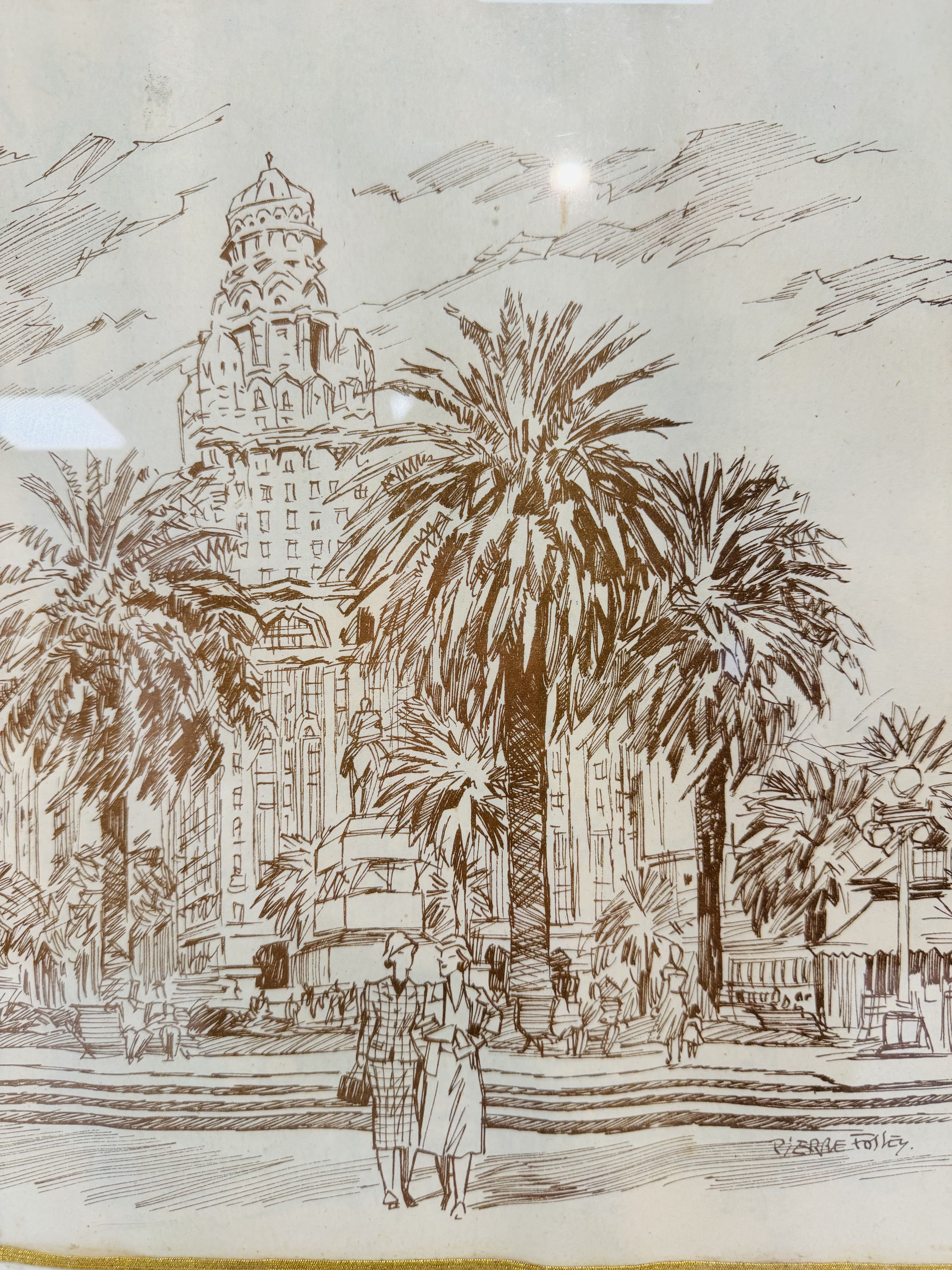 Lote #077 – Dibujo a tinta Plaza Independendencia, firma Pierre Fossey – 24x31cm – 36x45cm