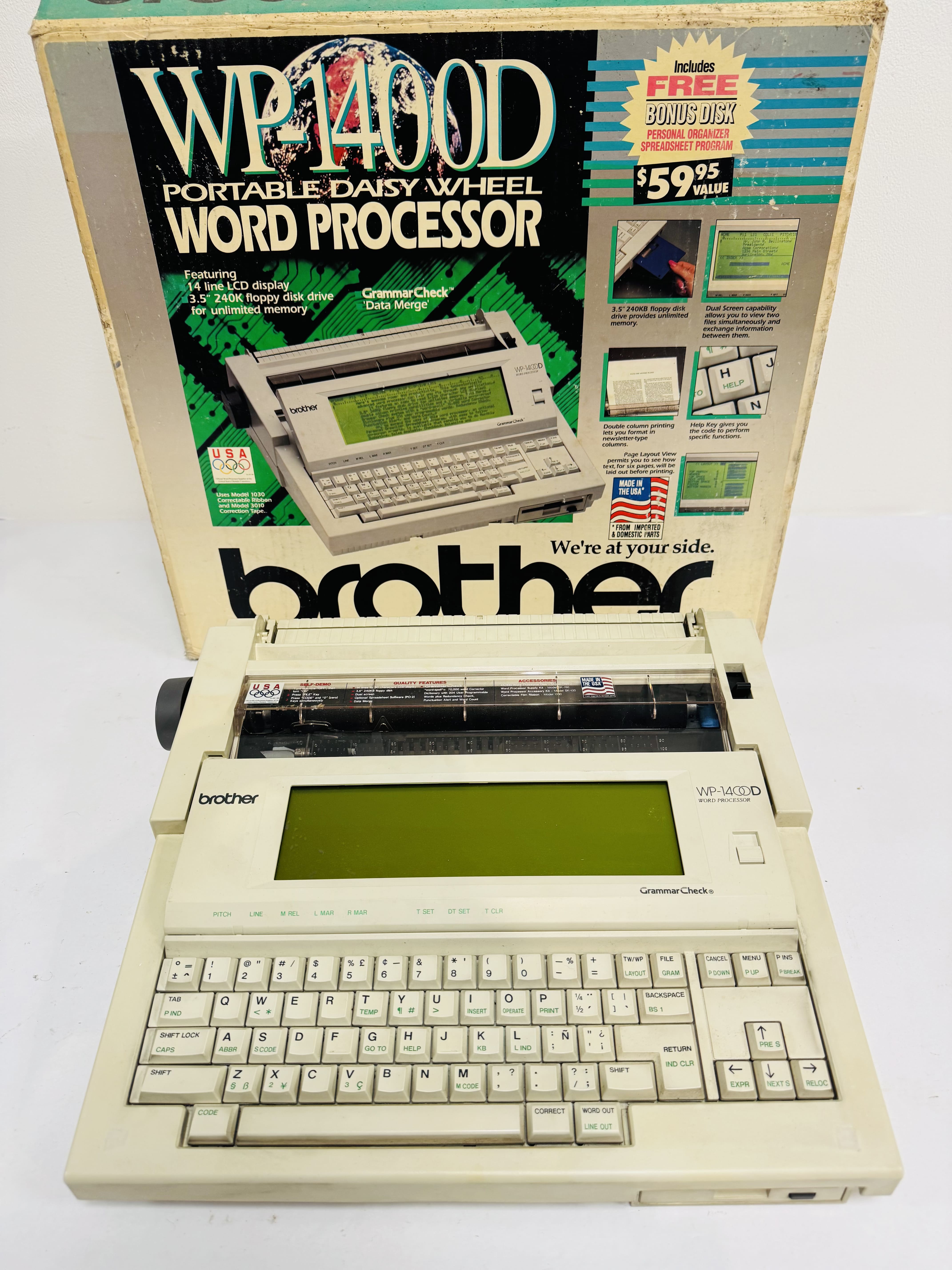 Lote #081 – Máquina procesadora de textos portátil marca Brother WP-1400D – 110v – años 80s – 43x39cm