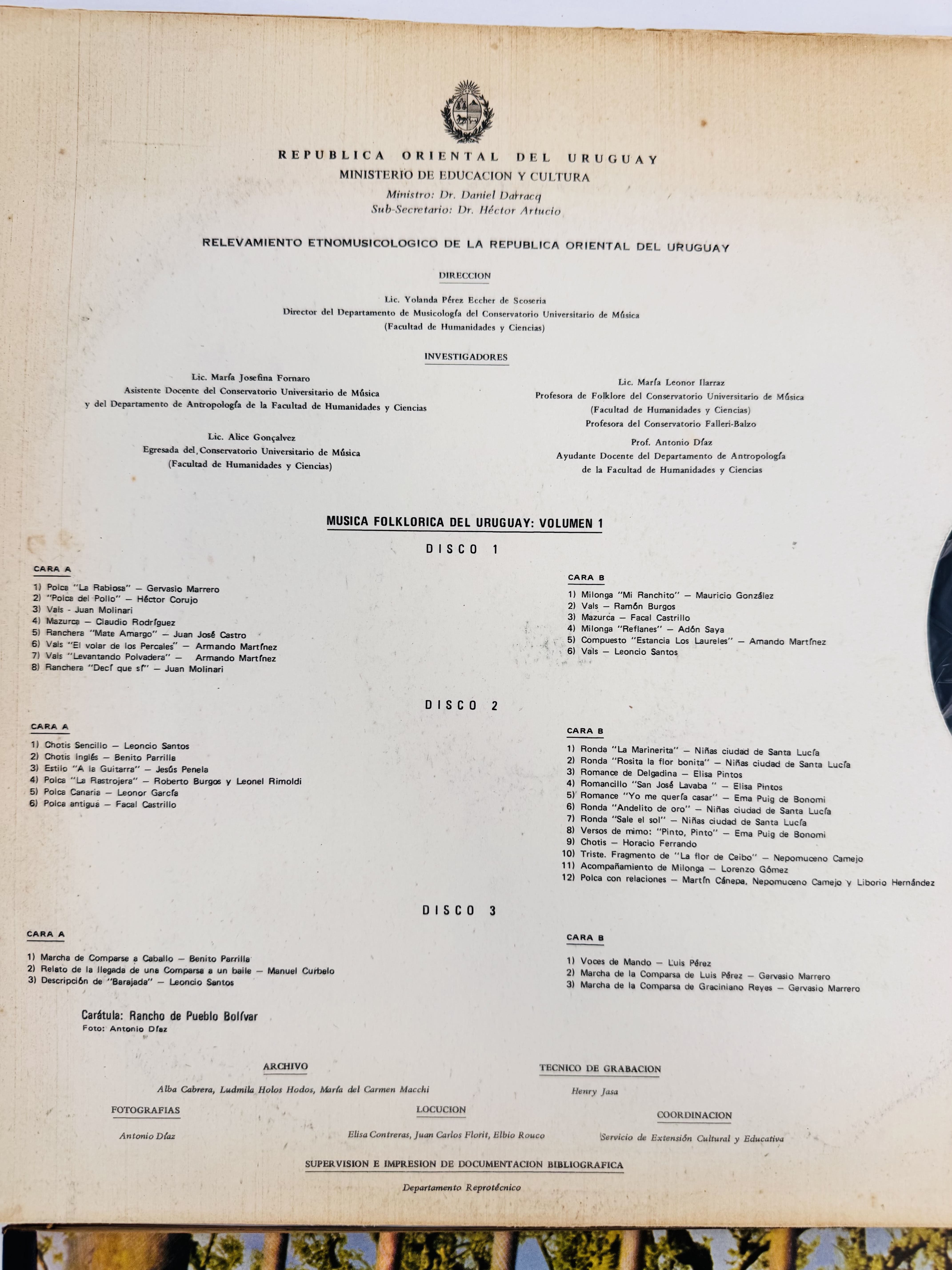 Lote #099R – 3 discos de vinilo de Música folklórica del Uruguay y cuatro revistas de danzas del salón montevideano con replicas de partituras, afiches postales entre otros
