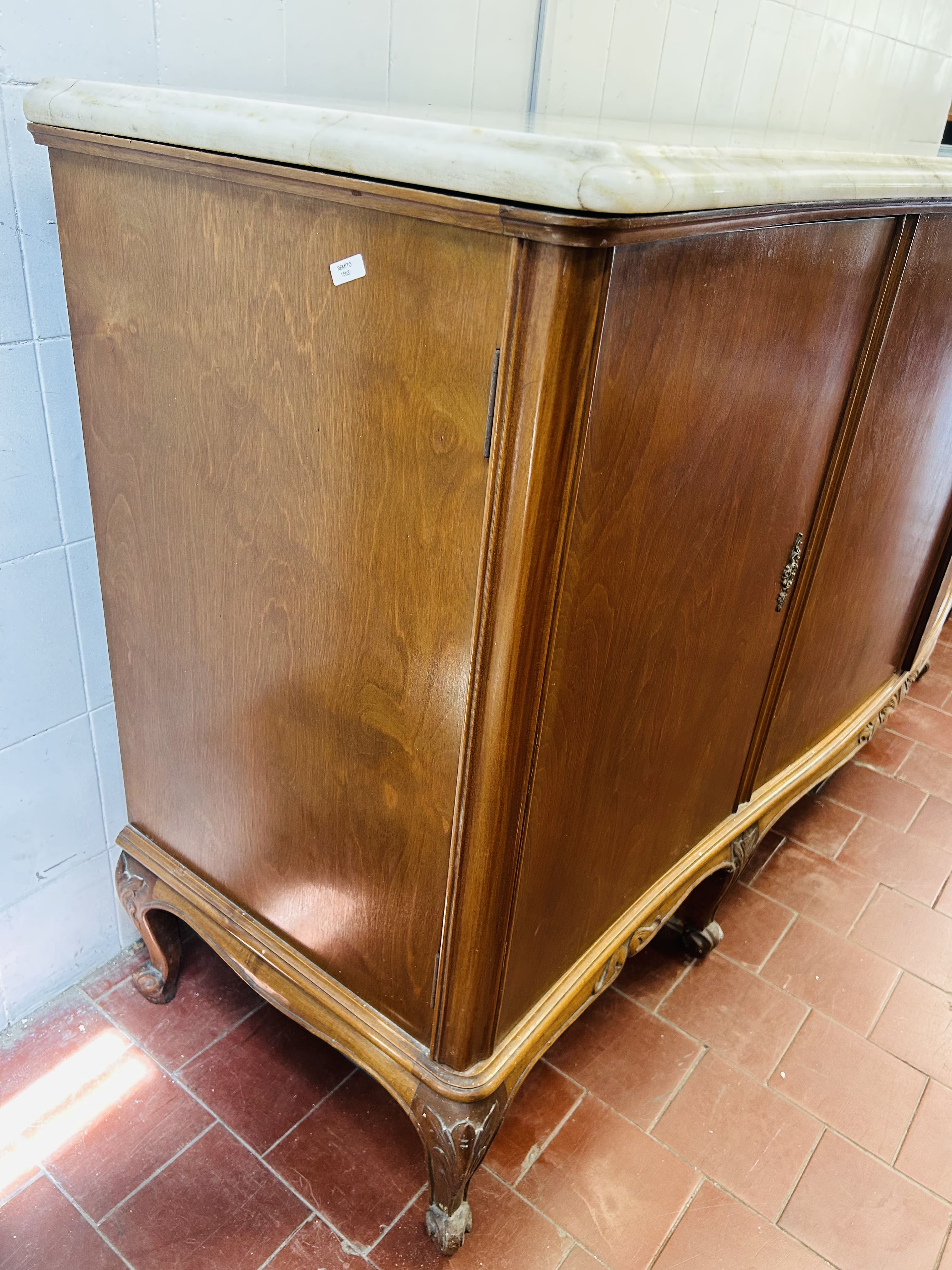 Lote #121 – Aparador Luis XV cuatro puertas y tapa de mármol biselado – 217x60x103cm