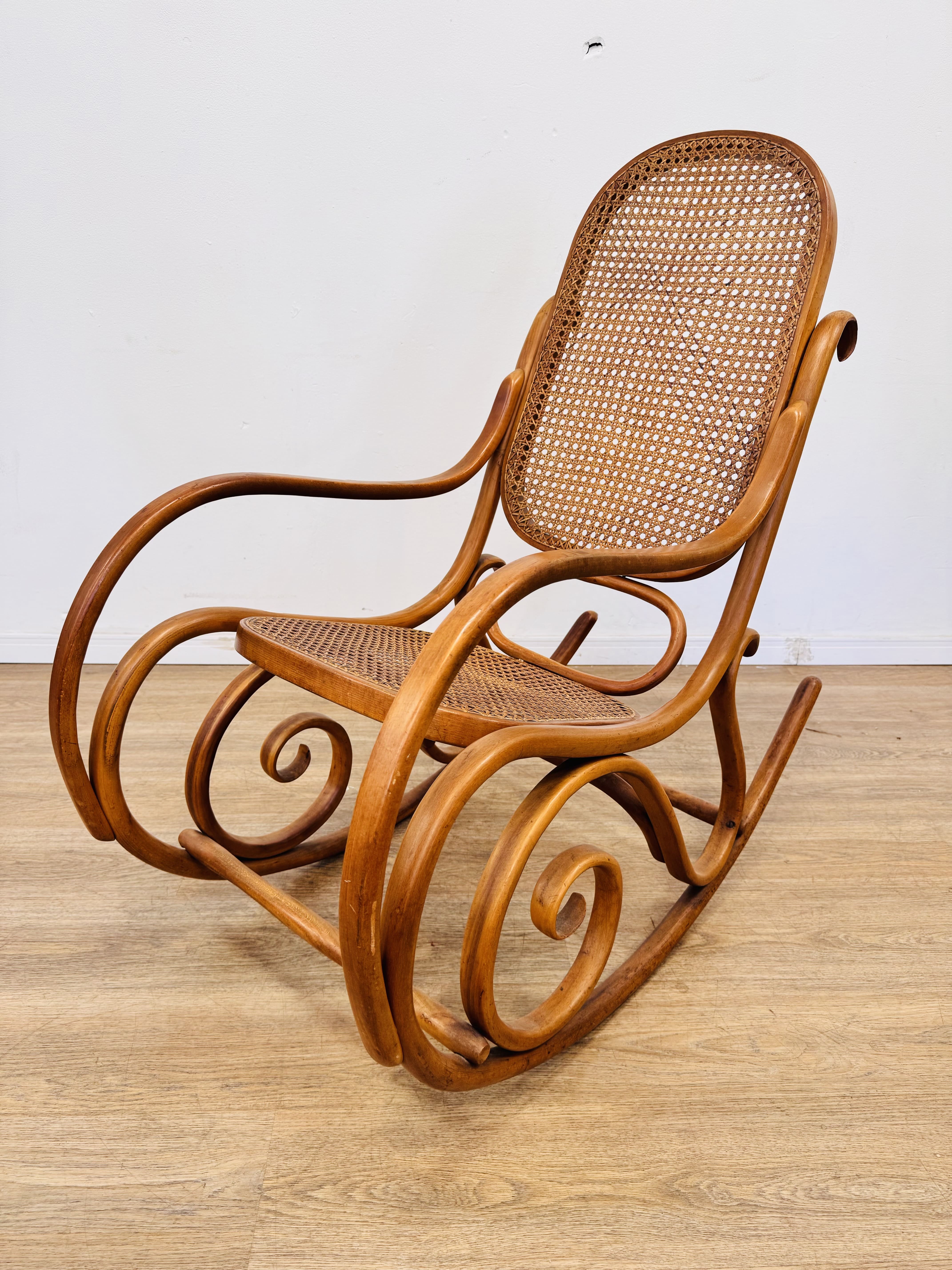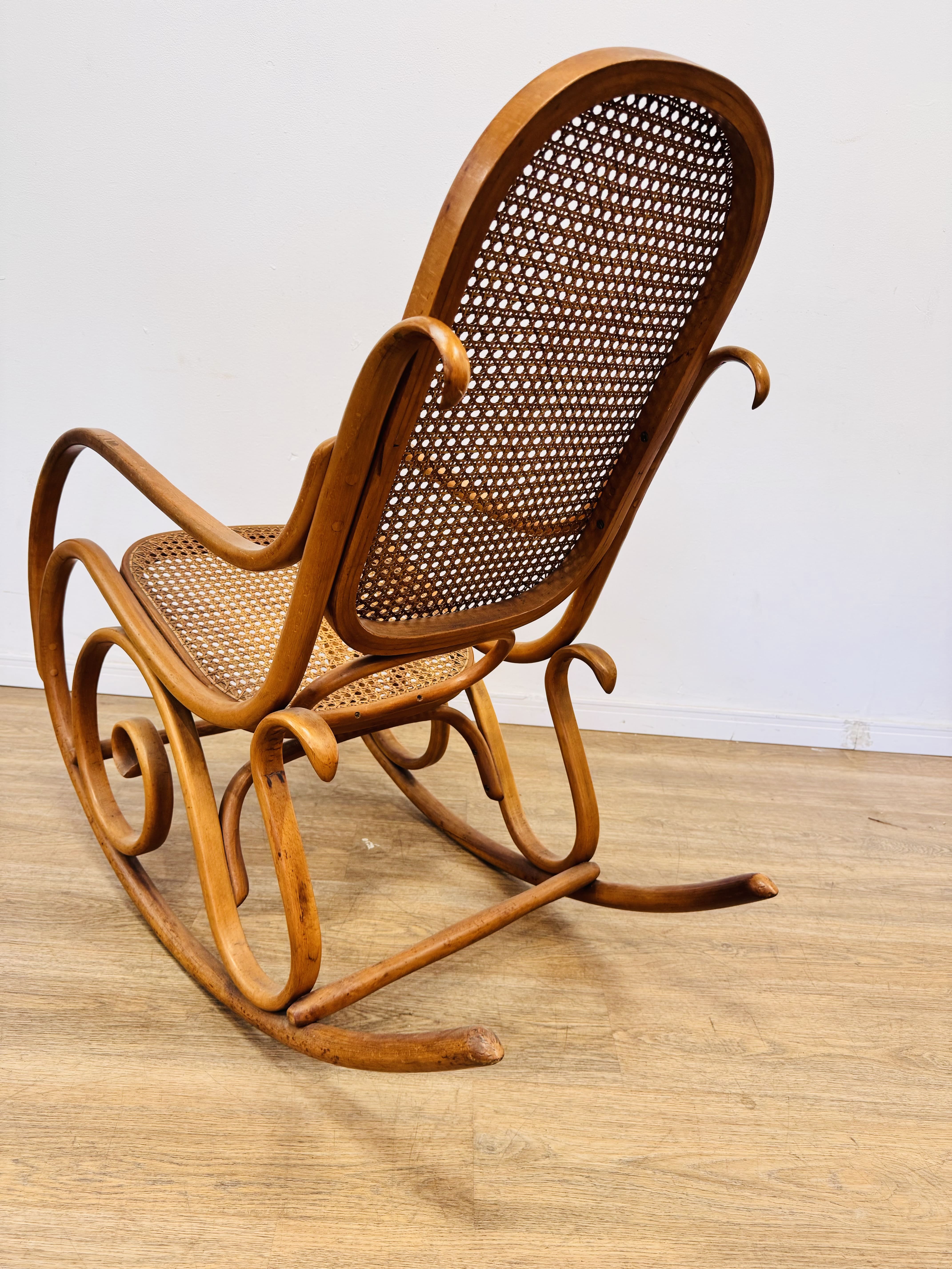 Lote #145 – Mecedora de Viena tipo Thonet con asieto y respaldo esterillado – 50x106x102cm