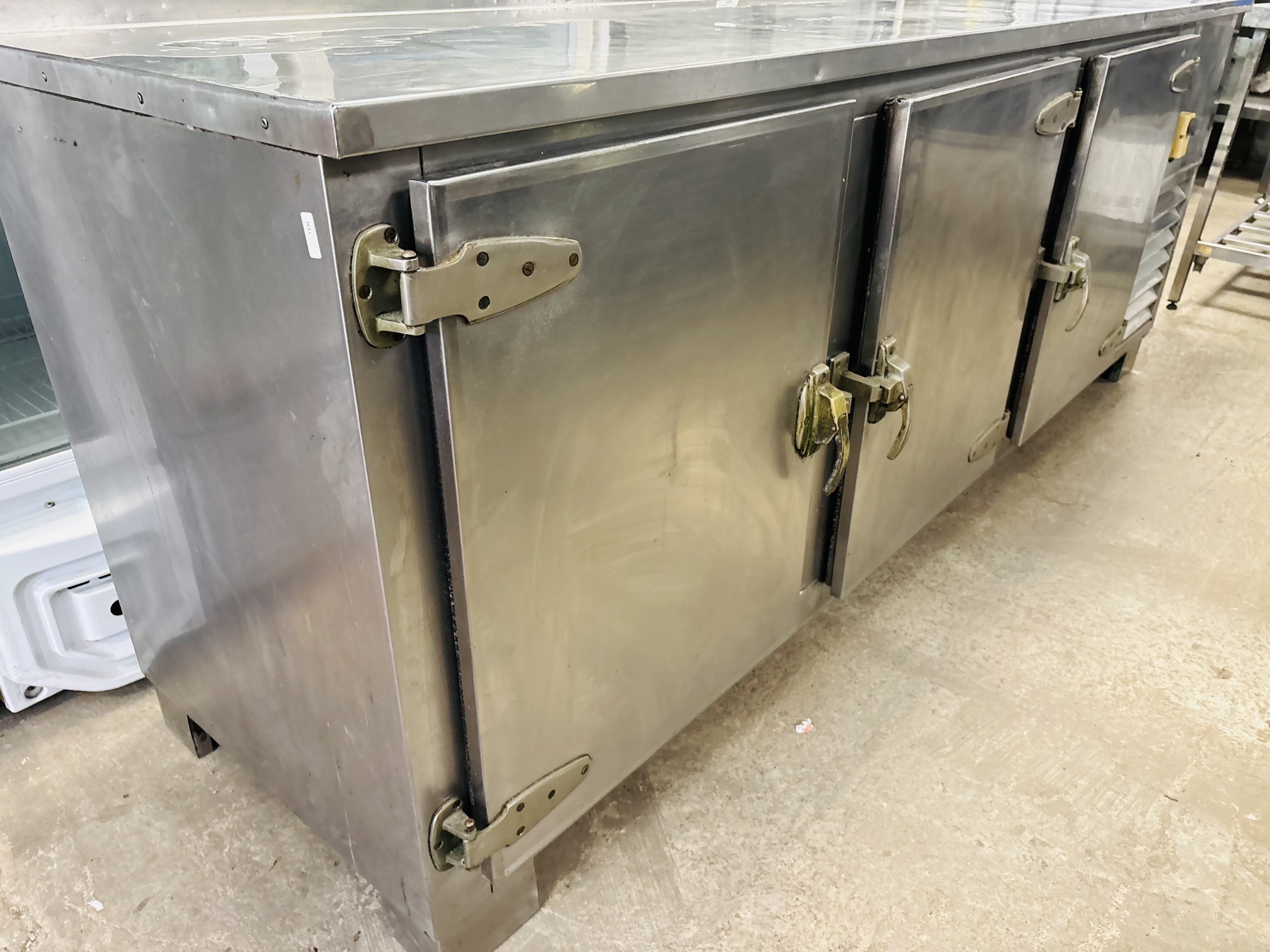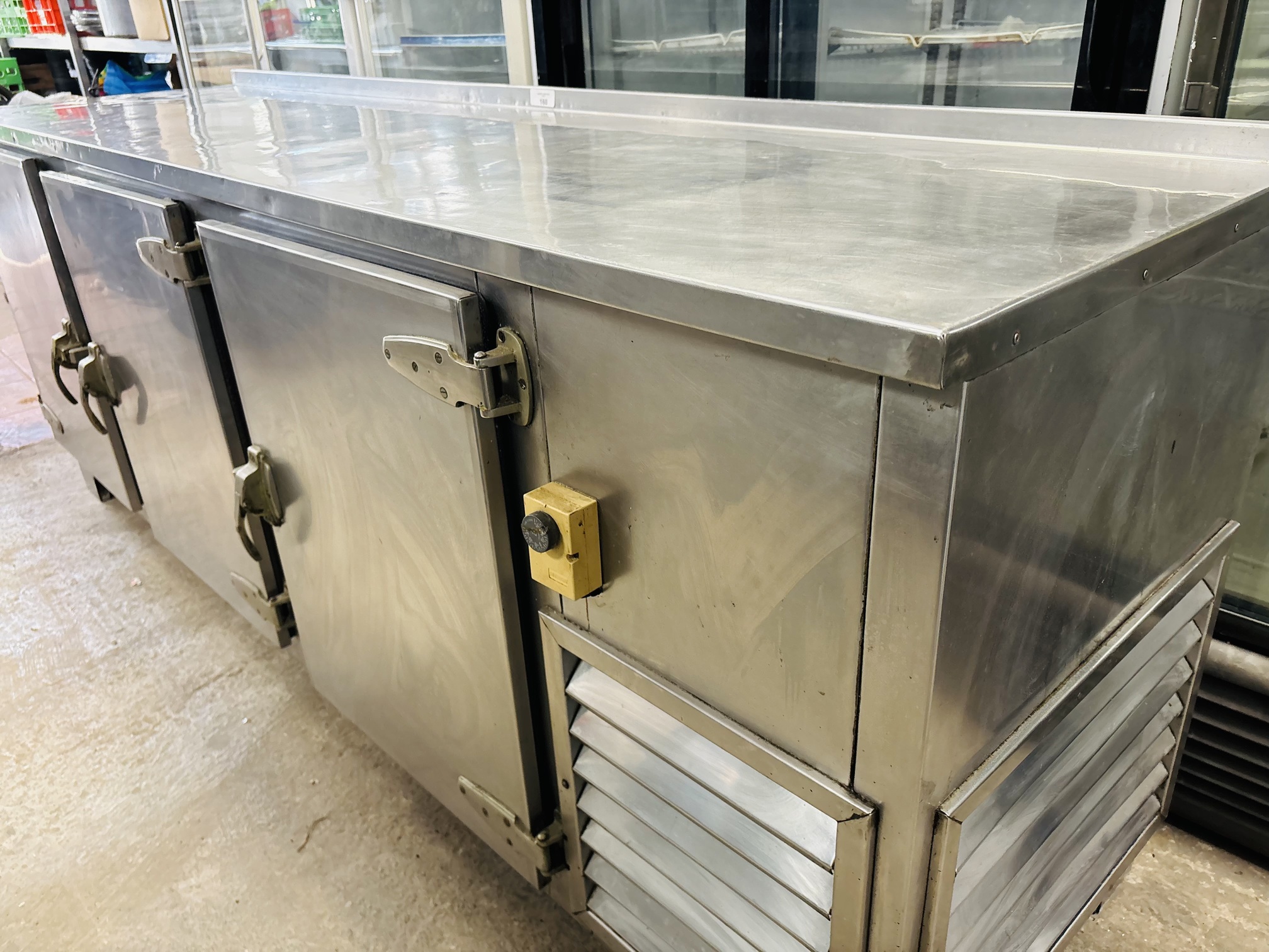 Lote #160 – Bajo mostrador en Ac/Inox refrigerado de 3 puertas – 238x66x90cm